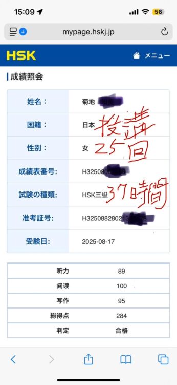 先生方は中国語と日本語の両方がネイティブなので、説明も分かりやすく効率よく学習できました。チャイナリンガーに通って本当に良かったと思っています。